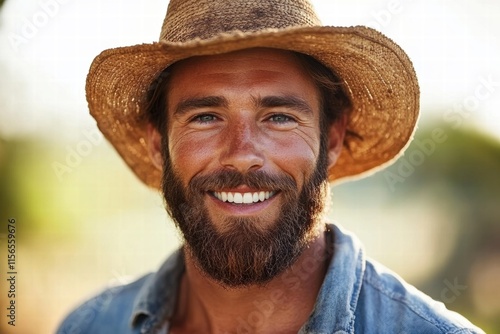 Fototapeta premium Happy Farmer in Straw Hat