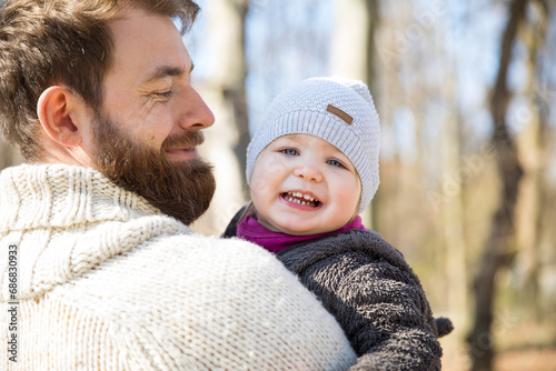Fototapeta premium Happy father carrying daughter in park