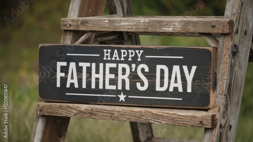 Fototapeta premium Happy Father's Day Rustic Wooden Sign on Ladder