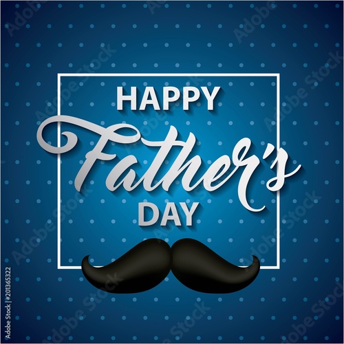 Fototapeta premium happy fathers day striped blue background sign with black moustache important...