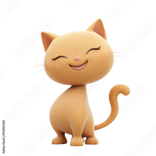 © LookChin AI, Obraz premium Happy Feline with Swishing Tail in Pastel 3D Render Style
