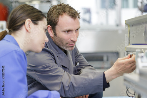 © auremar, Obraz premium happy female apprentice engineer working on washing machine