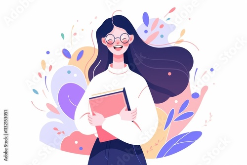 © joy, Obraz premium happy female teacher holding a book in her hands