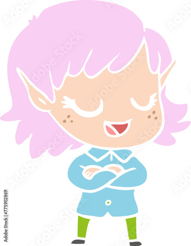 Obraz premium happy flat color style cartoon elf girl