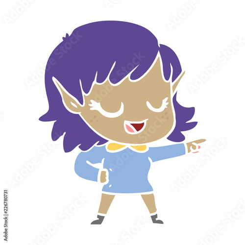 Obraz premium happy flat color style cartoon elf girl pointing