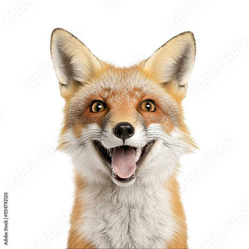 © Jakrapan, Fototapeta premium Happy fox with bright eyes and friendly expression on transparency background