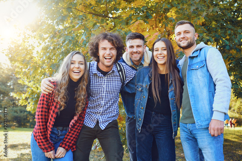 Obraz premium Happy friends are laughing at the park. Friendship of young people. Lifestyle