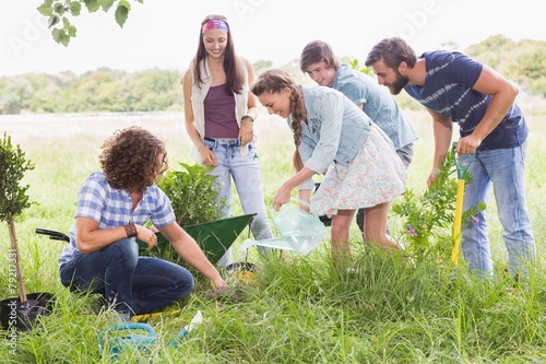 © WavebreakmediaMicro, Fototapeta premium Happy friends gardening for the community
