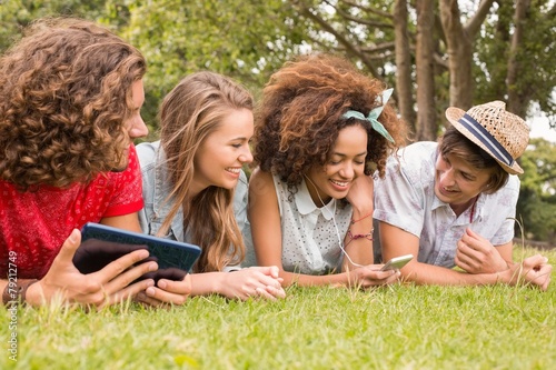 © WavebreakmediaMicro, Fototapeta premium Happy friends in the park