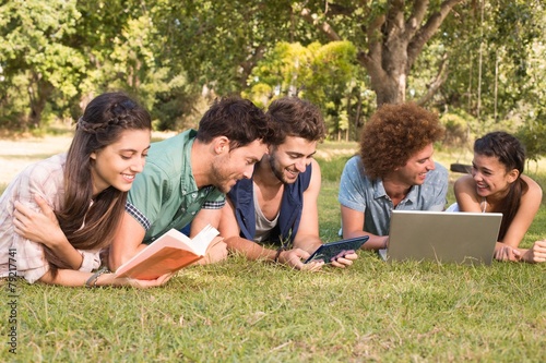 © WavebreakmediaMicro, Fototapeta premium Happy friends in the park studying