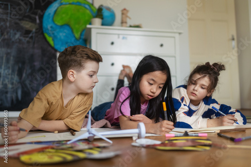© Halfpoint, Fototapeta premium Happy friends working on school project together.