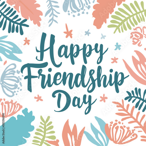 Obraz premium Happy friendship card. White background with colorful flowers frame.