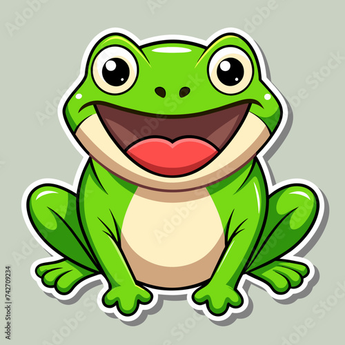 © PhotoPhreak, Obraz premium Happy Frog Sticker on White Background - Vector Illustration