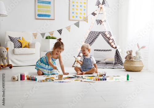 © JenkoAtaman, Obraz premium happy funny children paint with paint