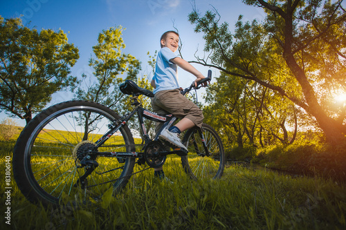 Obraz premium happy funny kid on bicycle. Active Leisure