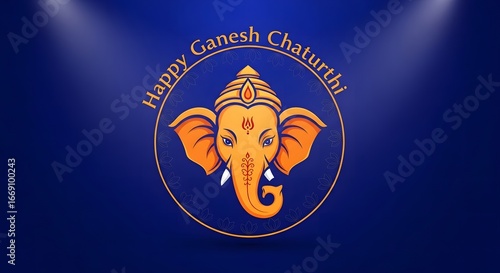 © BlackStarCreations, Naklejka premium Happy Ganesh Chaturthi Logo with Stylized Lord Ganesha