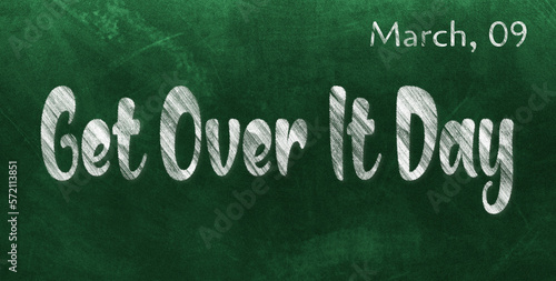 Obraz premium Happy Get Over It Day, March 09. Calendar of March Chalk Text Effect, design