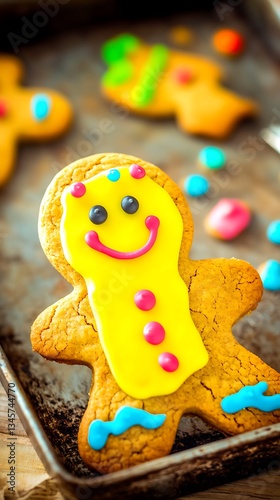 © Sakaratul, Obraz premium Happy Gingerbread Man Cookie Baking Tray.