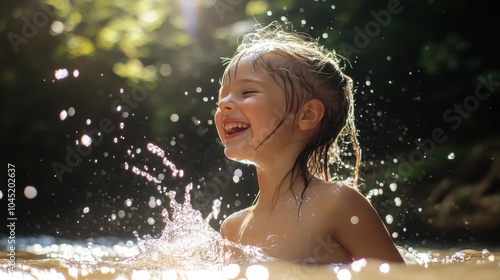 © AiAbstract, Obraz premium Happy Girl Playing in Shallow Water Splashing Joyfully