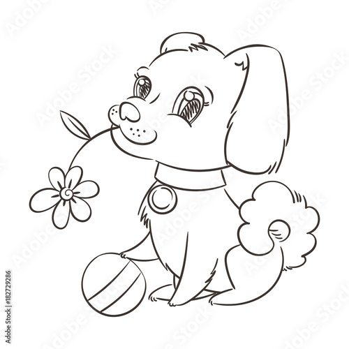 © Drekhann, Obraz premium Happy golden cartoon puppy. Cute little dog wearing collar.