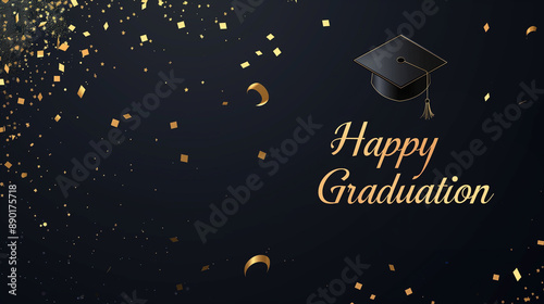 © Natali08, Fototapeta premium Happy graduation card with cap and diploma.