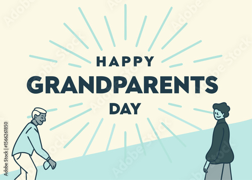 © Badhon, Obraz premium Happy Grandparents Day with Smiling Grandparents and Light Blue Rays