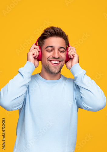 Naklejka premium Happy guy listening to music