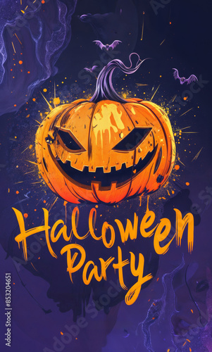 Fototapeta premium Happy halloween banner or party invitation illustration
