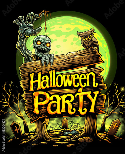 Fototapeta premium Happy halloween banner or party invitation illustration