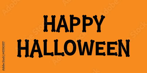 Obraz premium Happy Halloween. Bones text font. Bone letter type. Template print. Flat design. Orange background. Isolated. Greeting card.