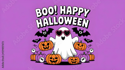 © MR Graphics., Fototapeta premium Happy Halloween card purple background.