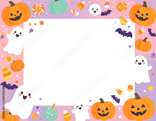 Fototapeta premium Happy Halloween: Cheerful Halloween Illustration, Decorated with Pumpkins, Ghosts, and Other Festive Elements