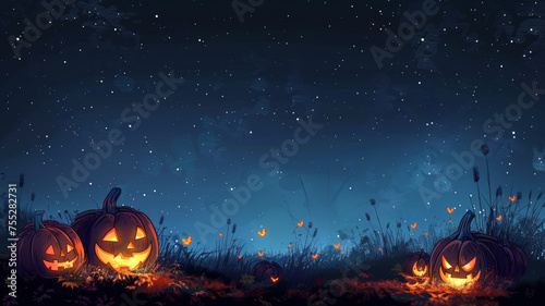 © Tharika, Fototapeta premium happy halloween day concept. pumpkins on dark background. Generated-AI