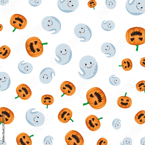 Naklejka premium happy halloween ghosts and pumpkins pattern
