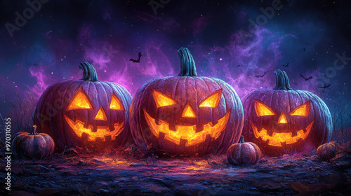 © wiparat, Naklejka premium Happy Halloween holiday spooky scary background