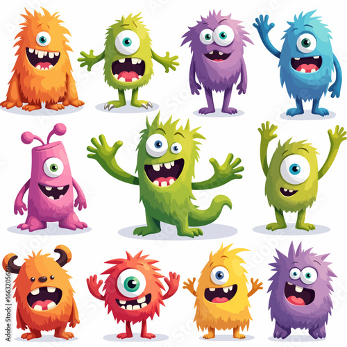 © Cartoon, Naklejka premium Happy Halloween. Monster colorful round silhouette icon super big set line. Eyes, tongue, tooth fang, hands up. Cute cartoon kawaii scary funny baby character