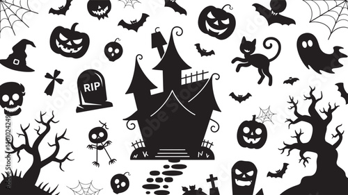Fototapeta premium Happy Halloween set of black silhouette vector illustration isolated On...