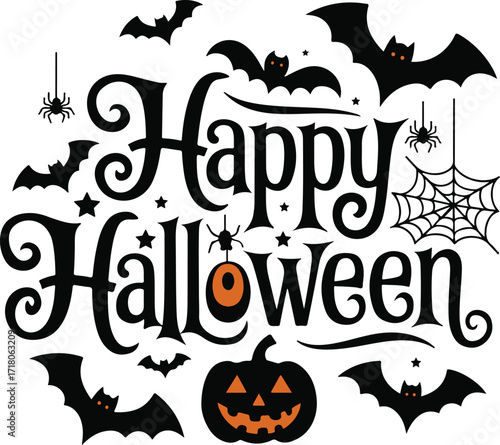 © Khadiza, Obraz premium Happy Halloween typography vector art and illustration.