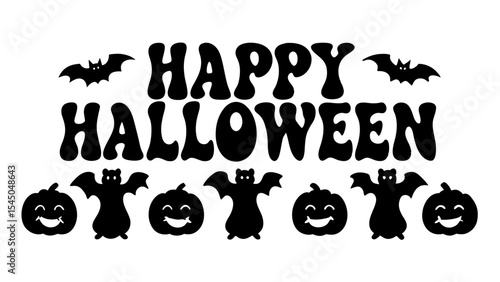 © Rani, Obraz premium Happy Halloween typography with flying bats vector.