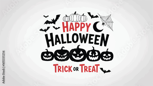 © TrendyImages, Naklejka premium Happy Halloween with Pumpkins, Bats, and Spider Web A Festive Design Displayed on White