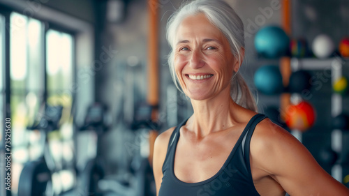 Fototapeta premium Happy healthy elderly woman at gym , healthy life style