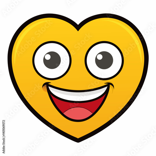 Fototapeta premium Happy heart face emoji cartoon with smile positive expression symbol