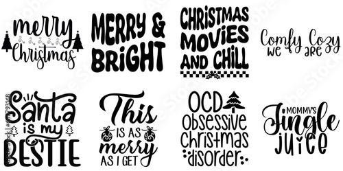 © David, Fototapeta premium Happy Holiday and Winter Calligraphy Bundle Christmas Black Vector Illustration for Icon, T-Shirt Design, Label