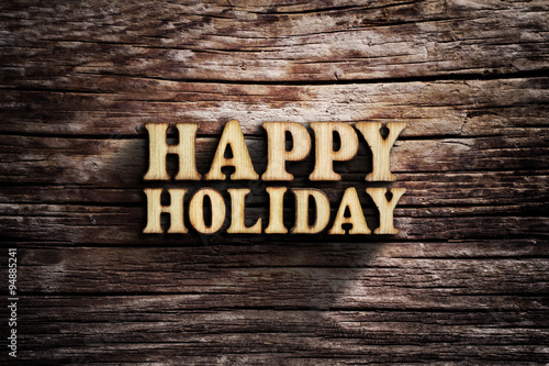Fototapeta premium Happy Holiday. Words on old wooden board.