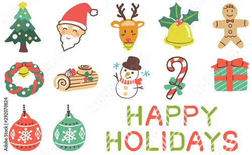 Fototapeta premium クリスマス アイコン HAPPY HOLIDAYS