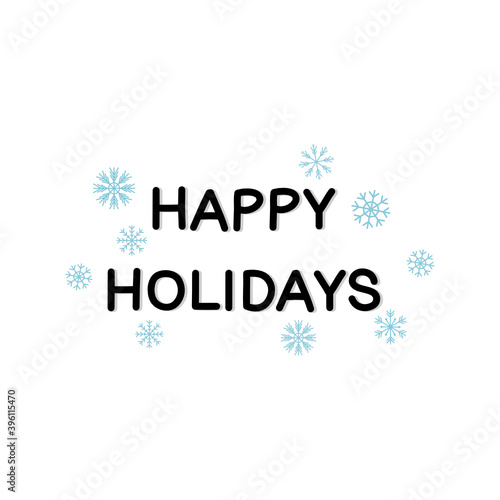 © Chanakarn, Naklejka premium Happy Holidays Calligraphy Text With Snowflakes on white background.