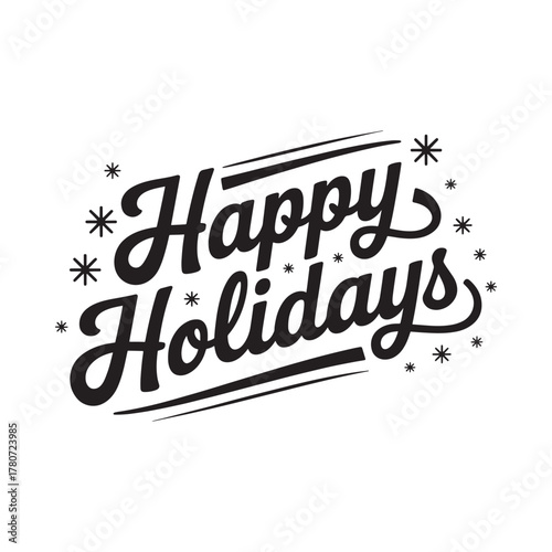 © MUZIHID CREATION, Fototapeta premium Happy holidays hand lettered typography with festive sparkles