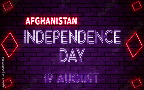 © Rehmat, Fototapeta premium Happy Independence Day of Afghanistan, 19 August. World National Days Neon Text Effect on bricks background