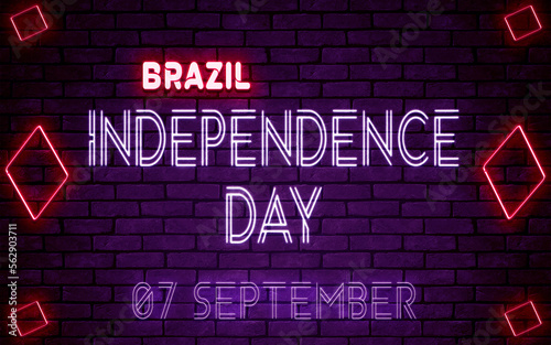 © Rehmat, Obraz premium Happy Independence Day of Brazil, 07 September. World National Days Neon Text Effect on bricks background