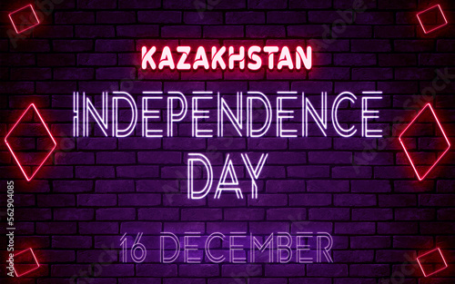 © Rehmat, Obraz premium Happy Independence Day of Kazakhstan, 16 December. World National Days Neon Text Effect on bricks background